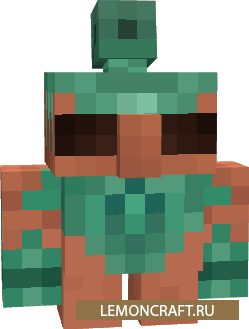 Мод на медного голема Copper Golem Mob добавляет в игру нового голема полностью состоящего из меди, который подвержен окислению и через некоторое время превратиться в статую. Для возвращения голема к изначальному состоянию его нужно обработать тапаром или ударом молнии.